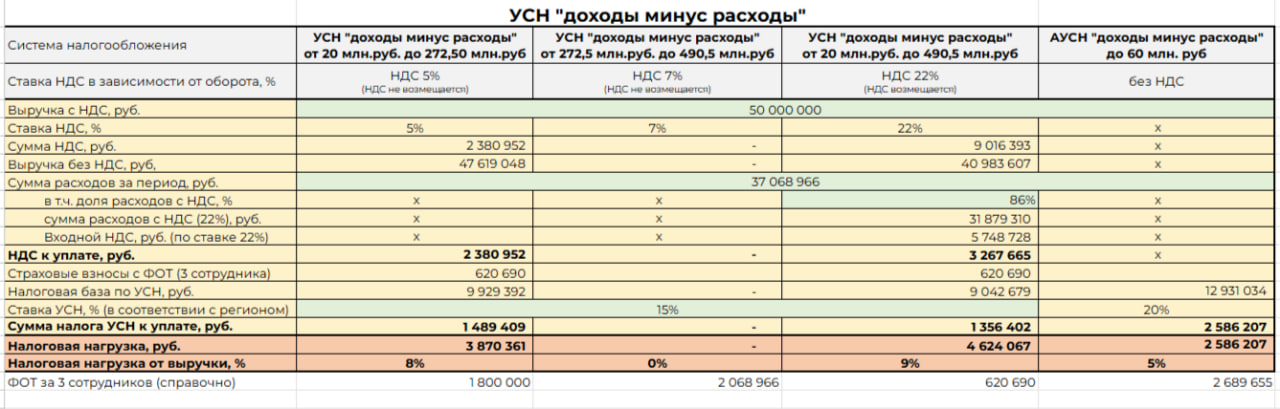 • АУСН «Доходы минус расходы» — итоговая нагрузка 5%
